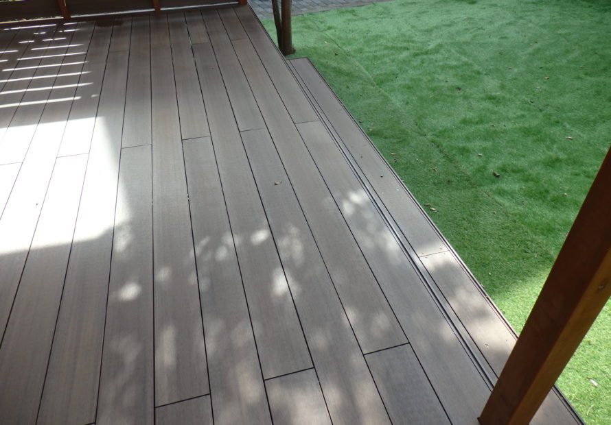 人工木のデッキを扱って早10年以上の歳月が経ちますが以前と比べてお客様の抵抗感がかなり少なくなったようです。このデッキもそうですが人工芝に至っても製品の質感の進歩はめざましいものがありあえてメンテナンスが大変な天然ものを使う必然性がなくなったのかもしれません。