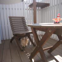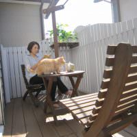 施工例は数年前にお客様の御承諾の上ウッドデッキでくつろいでいるところを