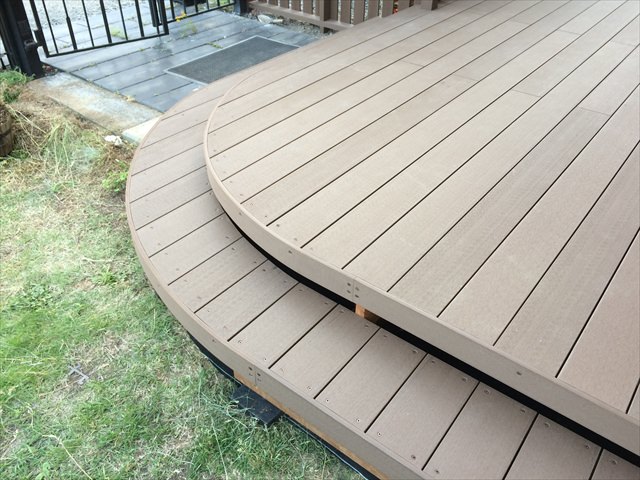 弊社に来社した当初は、天然木(ハードウッド)でご検討されていた施主様でしたが、検討に検討を重ねて人工木となりました。天然木、と人工木という選択肢のある弊社では、すべてのメリットデメリットをお話したうえでお選びいただいています。その中で、決定した理由として、「人工木が思っていたより見た目も良い」「価格が安い」とのことです。
