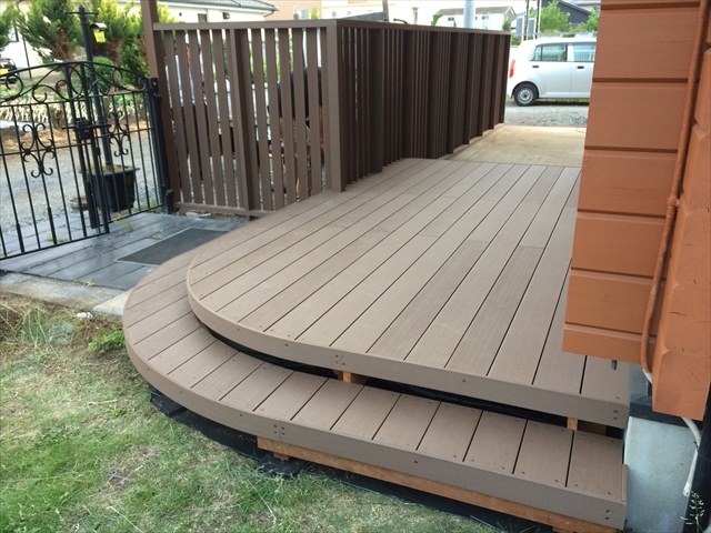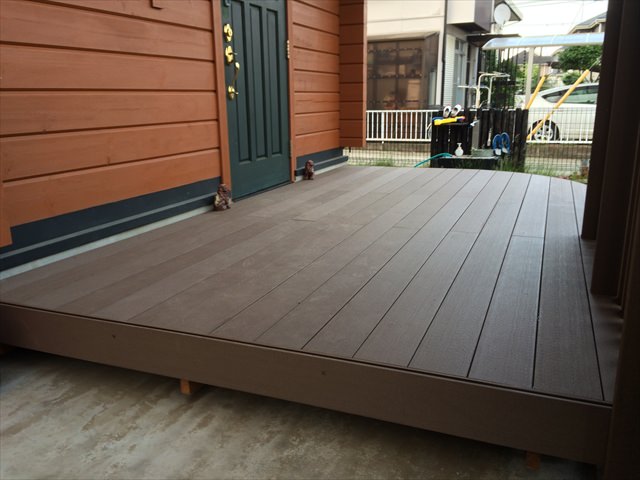 ご縁あって埼玉県日高市より数回ご足労までいただき、ご依頼となったリフォーム物件、人工木での玄関アプローチデッキの施工例をご紹介します。