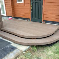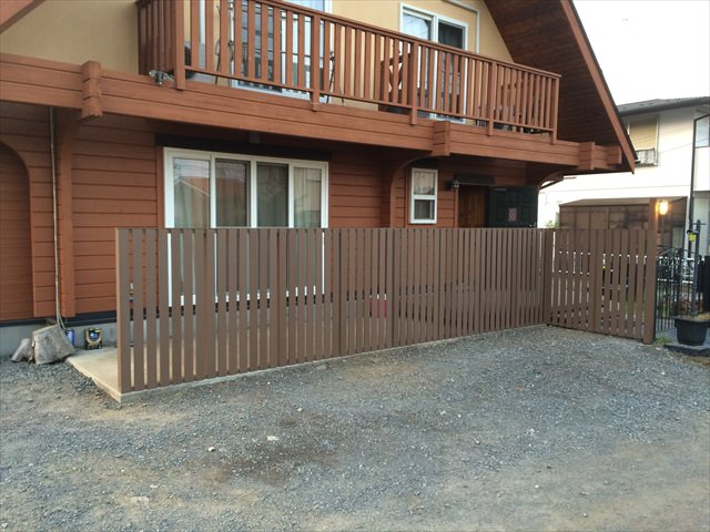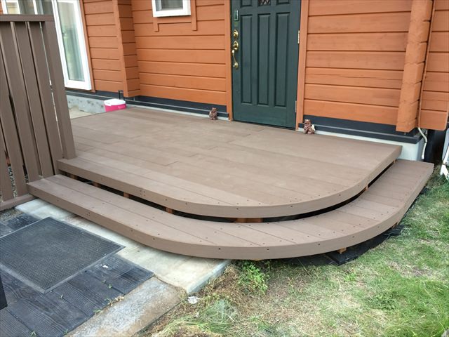 玄関アプローチデッキは、ご家族は当然ですが、訪問客を迎える顔になっているものです。既存デッキも多少の痛みがあったものの、腐敗がある状態ではなかったのですが、キレイにしておきたいものです。腐る事のない人工木で施工することで、安心して長い年月ご使用いただけます。今回は、人気色の「ブラウン」で施工していますので、落ち着いた雰囲気に仕上がっています。