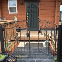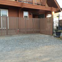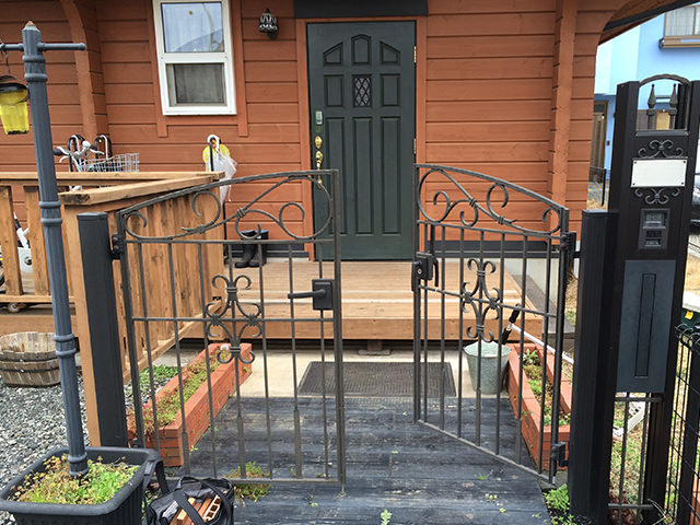施主様は別で「門扉にライトを取り付けたい」と考えてた案件に関しても、フェンスの終端にマリンライトを取り付けることですべて解消しています。マリンライトを取り付ける柱は90mm角材を使用していますが、門扉柱にくっつけることで存在感を和らげています。