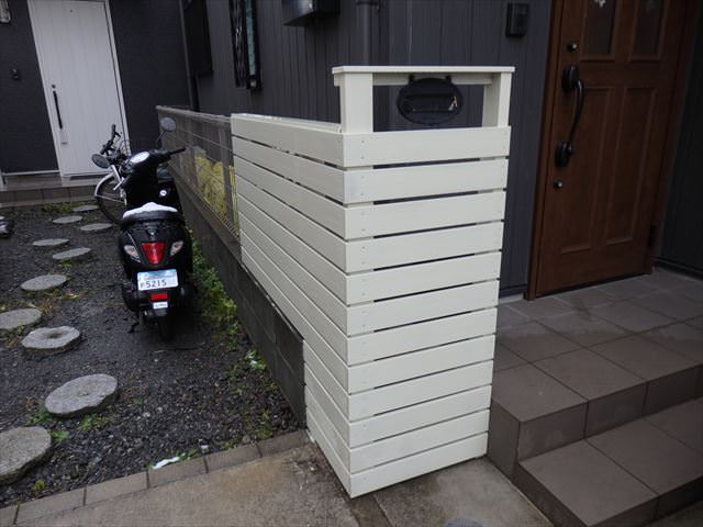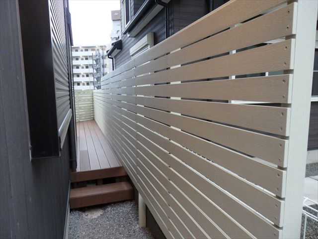 をしました。ウッドデッキの工事に付帯する工事としては玄関前から続く目隠しの