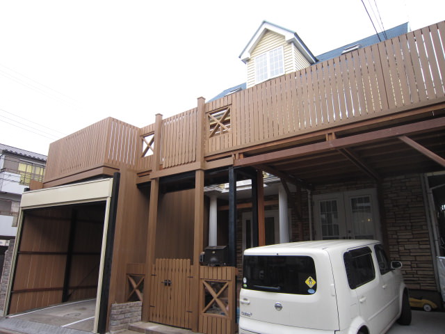 - Answer 1可能です。ウッドデッキと一体感のあるガレージになります。