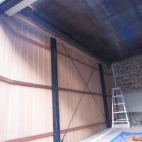 アールウッドの縦貼りを一本通しで壁を作りましたが、既存の鉄骨が