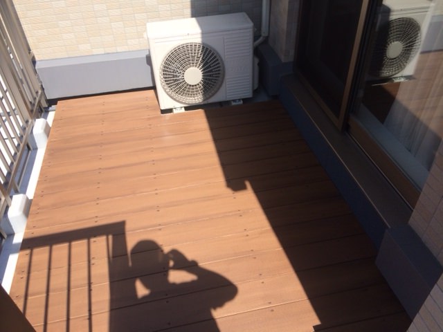 人工木材の床でグレーの防水層も見えなくなりスッキリとした印象になりました。