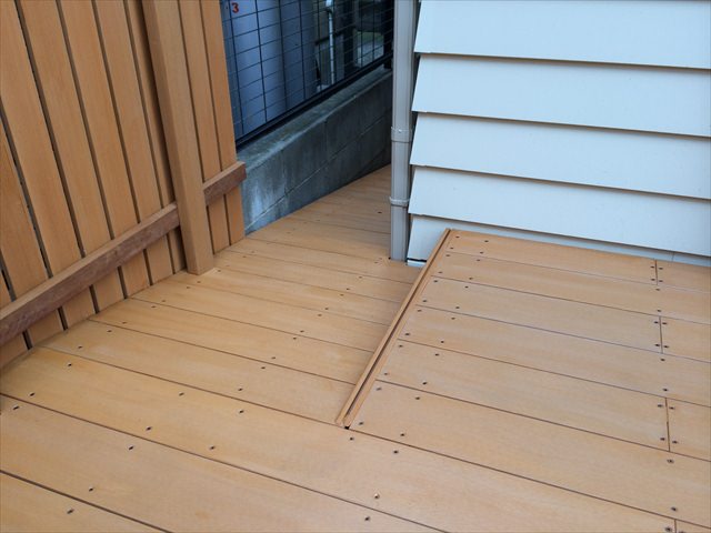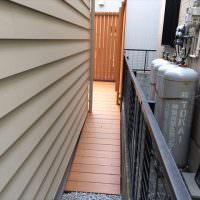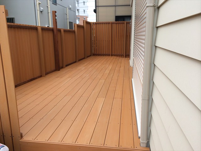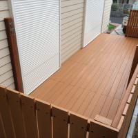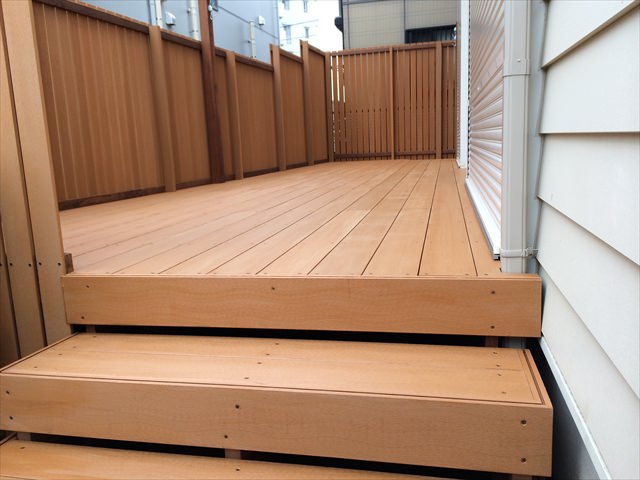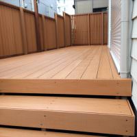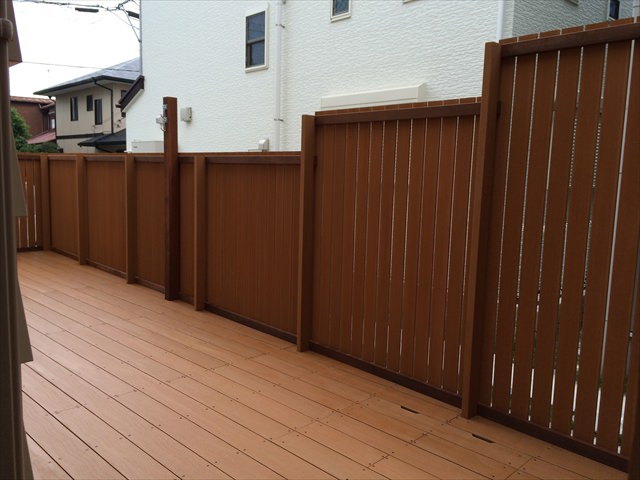 関東圏の密接住宅事情によって、隣家の駐車場が近々だったり、一方の庭にとても近い箇所に存在するなど目線がとても気になる状態です。一部を高くする目隠しフェンスで囲こみ、周囲からの目線を遮断するべく「プライバシー保護重視型フェンス」に重点をおいた戸建て庭へのウッドデッキ施工例です。目線が気にならなくなるだけでウッドデッキの上での生活も快適になることでしょう。