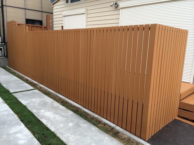 プライバシー重視で一面フェンスを立てインパクトある外観となりました。