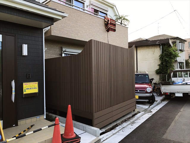 新築時からの施工となりました。高さもある特徴的なフェンスが、ひときわ視線を集めます。
