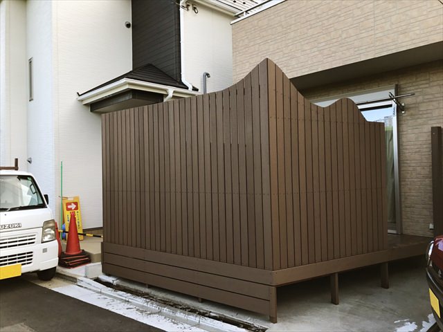 背の高い特徴的なフェンスを設定したことで、 目線を気にすることなくウッドデッキ生活を楽しんでいただける例をご紹介します。 新築完成前からご相談をいただき、完成間もない状態で施工となりました。 …..