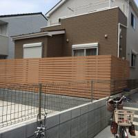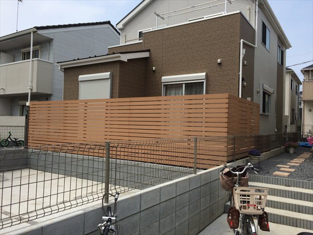 フェンスで囲まれていても、隙間や人工木材のベージュ色が圧迫感を軽減しています。