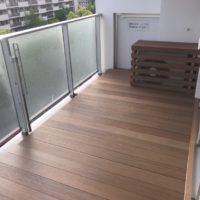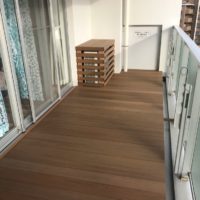 マンションのバルコニーは現在ほとんどのお客様がアールウッド(樹脂木)を選ばれます。それは天然木材が半年で変色するのに対し、アールウッドは変色せずに天然木と同じ質感で数十年使えるからです。