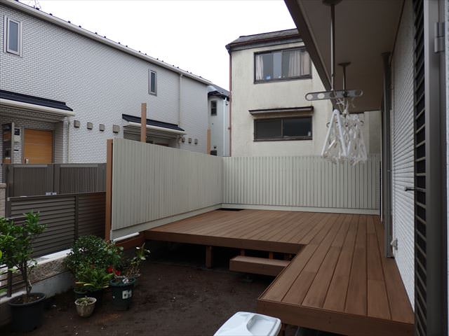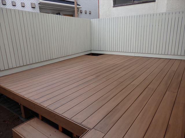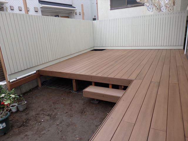ウッドデッキは出幅180cmワイド270cmという定型のメーカー品でした。