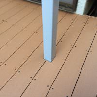 これからお子さんが夏の庭でプールなどで遊べるように、ささくれがない人工木材を選択されました。天然木でささくれが出てケガにつながったり、ビニールプールに刺さって穴が開いてしまったりすることも想定されるとお勧めできます。