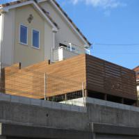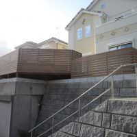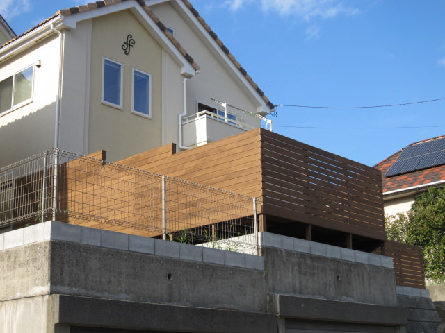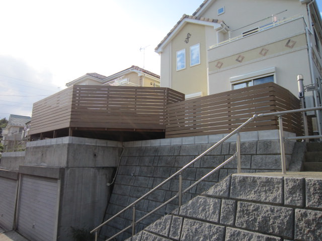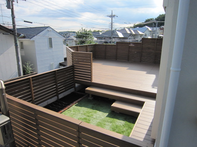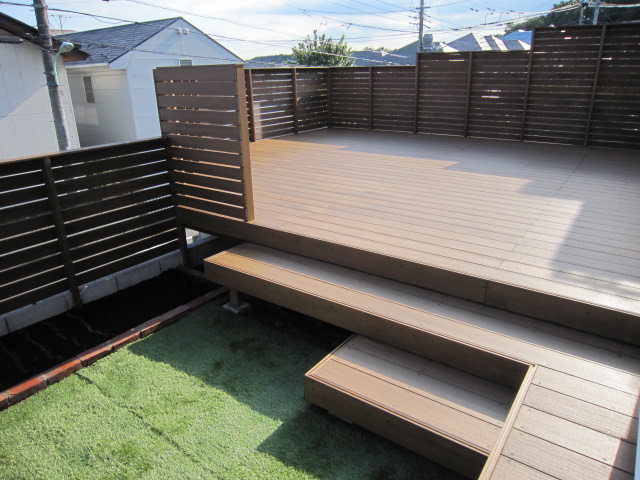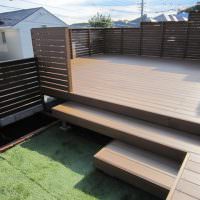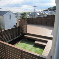 手すりフェンスは目隠しフェンスです。ウッドデッキの部分をより広く