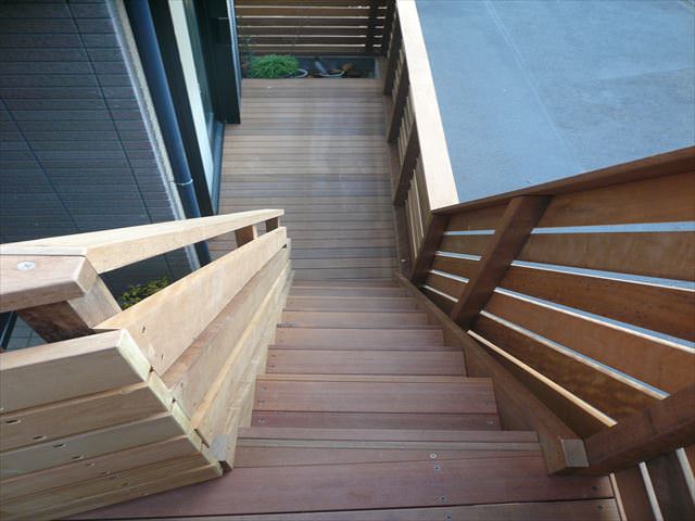 当初は庭のウッドデッキのみご検討のお客様でしたが計画が進むにつれ駐車場にも階段が