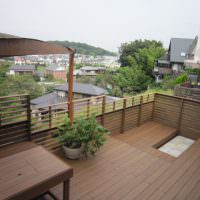 傾斜地はある意味でウッドデッキの為にある形状とも言えます。 施主様は横浜の傾斜地にお住まいを購入され、ご自宅の完成前にすでに 広いウッドデッキとそこで行うガーデンライフをイメージされていました。 弊社にご相談されたときよ…..