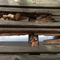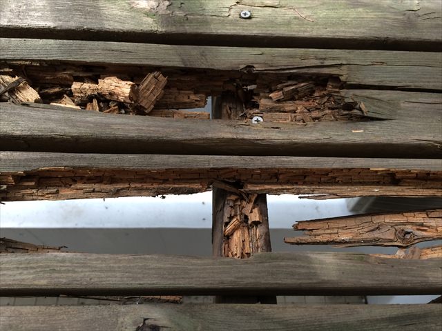 雨風にさらされた数十年の蓄積によって、骨組みまで腐敗進行してしまった戸建ての2階ベランダ部分。覗いてみると1階部分が見えてしまうほどの大穴があいているほど状況は悪化していて、主要使用範囲としては緊急を要するほどでしたので…..