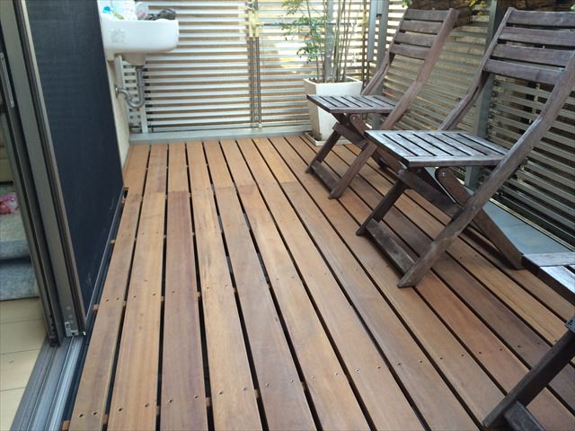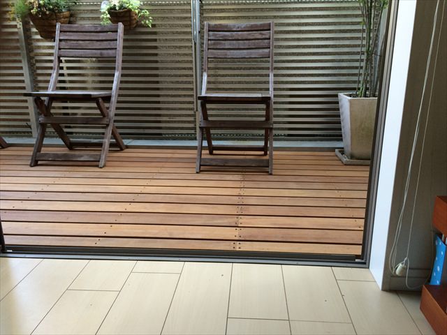 これで、これからは安心して乗れる、そして、しばらくできなかったイスに座りながらくつろげる空間のウッドデッキに生まれ変わりました。