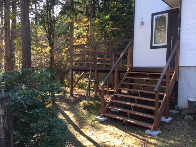 別荘地では、手入れ不要の「人工木」です
