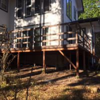手入れをしても構造自体が腐ってしまって、床も崩れてしまい、いつ落ちてもおかしくない状態が、高耐久木材を使うことで安全なウッドデッキに生まれ変わりました。