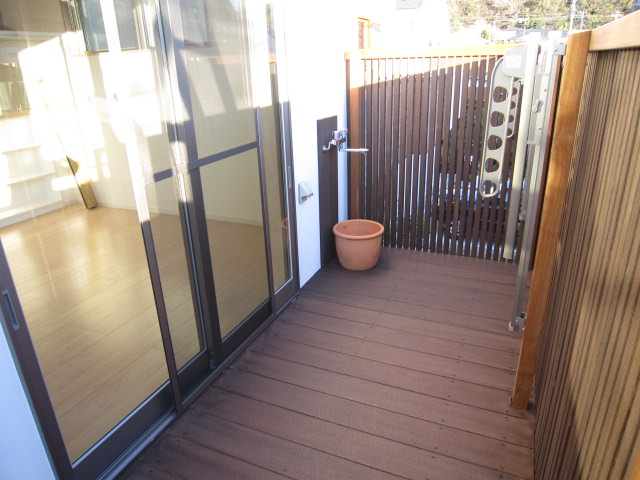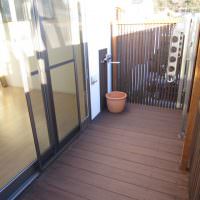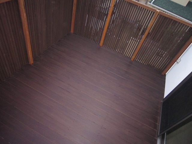千本格子の渋いウッドデッキです。