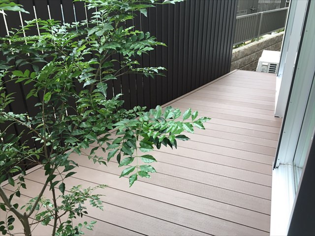 台形地の処理も得意としている弊社ホームページを観ていただき、人工木指定でご依頼をいただきました。