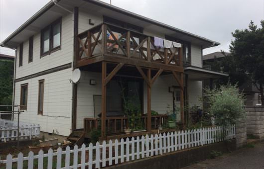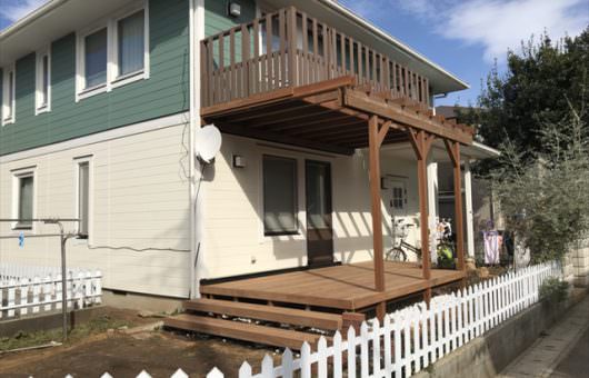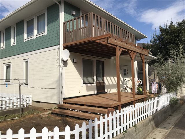 家自体の外壁塗装も含めたリフォームと同時に、ベランダ兼用のウッドデッキを