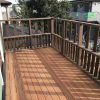 家自体の外壁塗装も含めたリフォームと同時に、ベランダ兼用のウッドデッキを 新たに作り替えたいというご依頼を受けました。 今回、新たに作るウッドデッキは、1階ローデッキ、2階ハイデッキを含め、 床面がハードウ…..