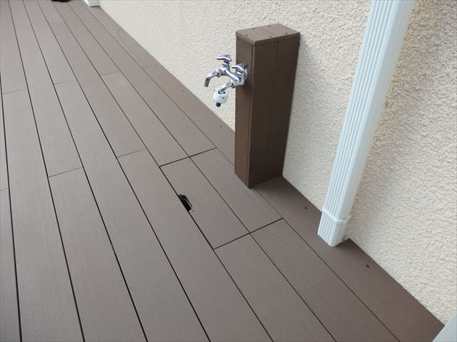 耐久性が良く、経年で変色したりしない人工木材アールウッドで施工を