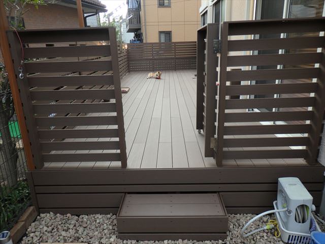 こちらの施工例は広い庭を全て弊社の人工木材アールウッドで施工した施工例です。