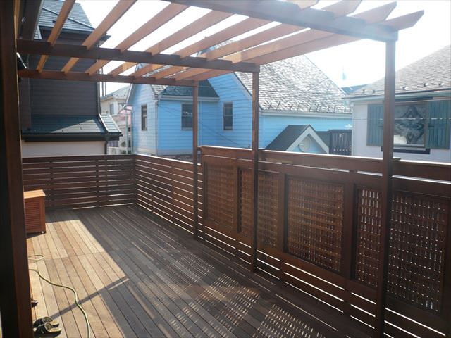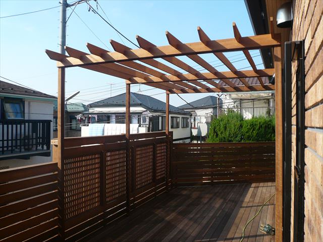 これは主に西陽の差し込みを防ぐ為です。ウッドデッキをご希望のお客さまのお悩みで最も多いのが