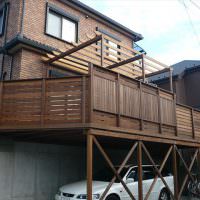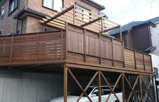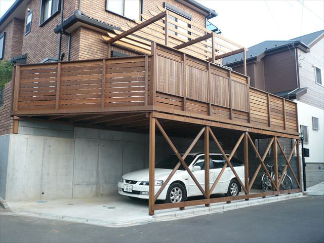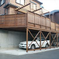 駐車スペースの上が広いウッドテラスになりました。