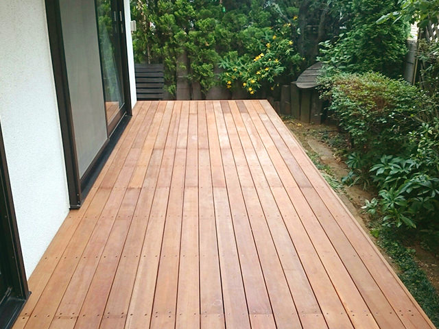 今回は施主様から「長く」そして「天然木にこだわりたい」との事でしたので、ハードウッドのウリン材をご提案させていただきました。