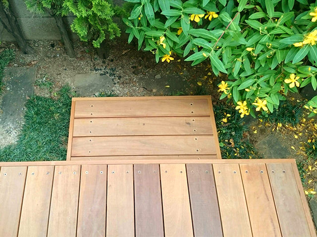 手入れを施していても、腐ってしまったデッキを心機一転、天然木ハードウッドのウリン材で作り替えることで、スッキリした印象に変わりました。