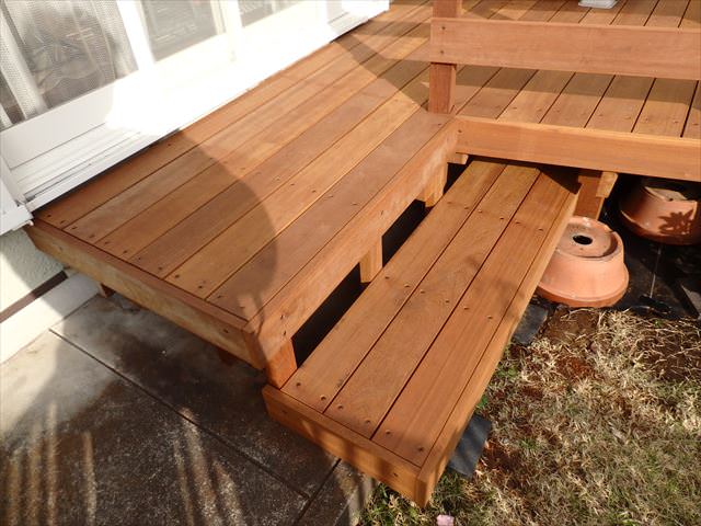 2016年11月のウリン材の施工例です。既存のウッドデッキが腐食したため