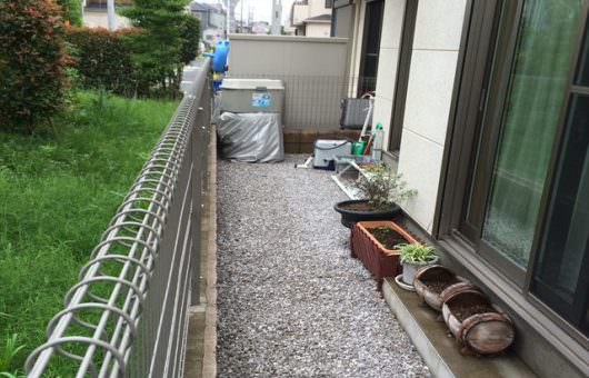 分譲戸建て住宅の庭へのご依頼をいただきました。大きさとしては全体で9平方メートルもあるので分譲住宅でも平均的な大きさであると思います。しかし、庭の形が家の形と相まって、多角形のため「使い勝手が悪い」と感じられていたそうで…..