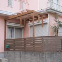 フリーのウッドデッキ材のアールウッドです。パーゴラは同じく高耐久で強度の