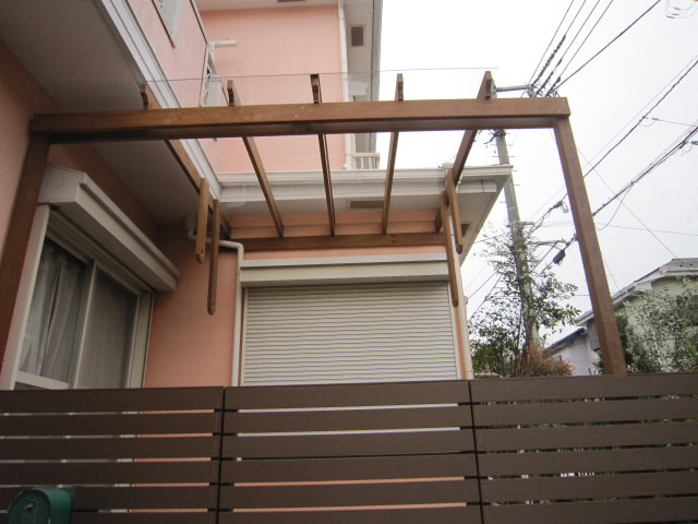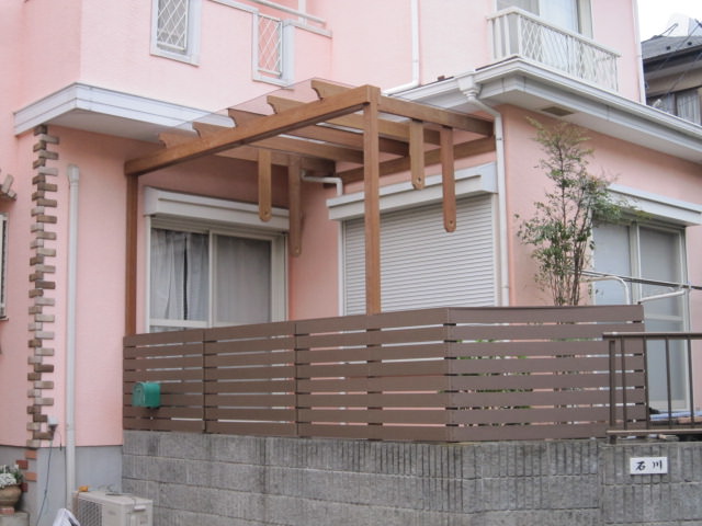 弊社ではパーゴラに屋根材のポリカーボネートを付けてご提案してます。