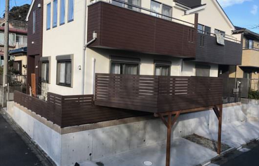 今回のもう一つのメリットはウッドデッキのフェンスと家のバルコニーデザインが