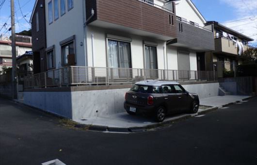 しました。駐車場は段差が約2mで駐車スペースの高さを取る為家側にアプローチ
