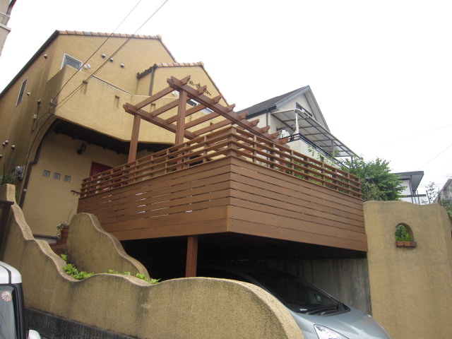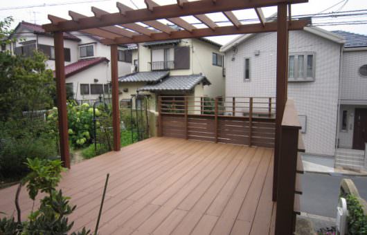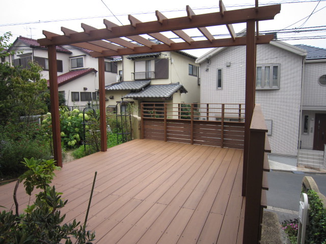 今回のお客様はウッドデッキをまたぐ細身のパーゴラがおきにいりで