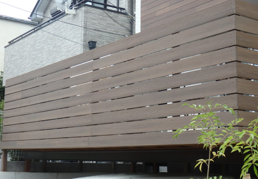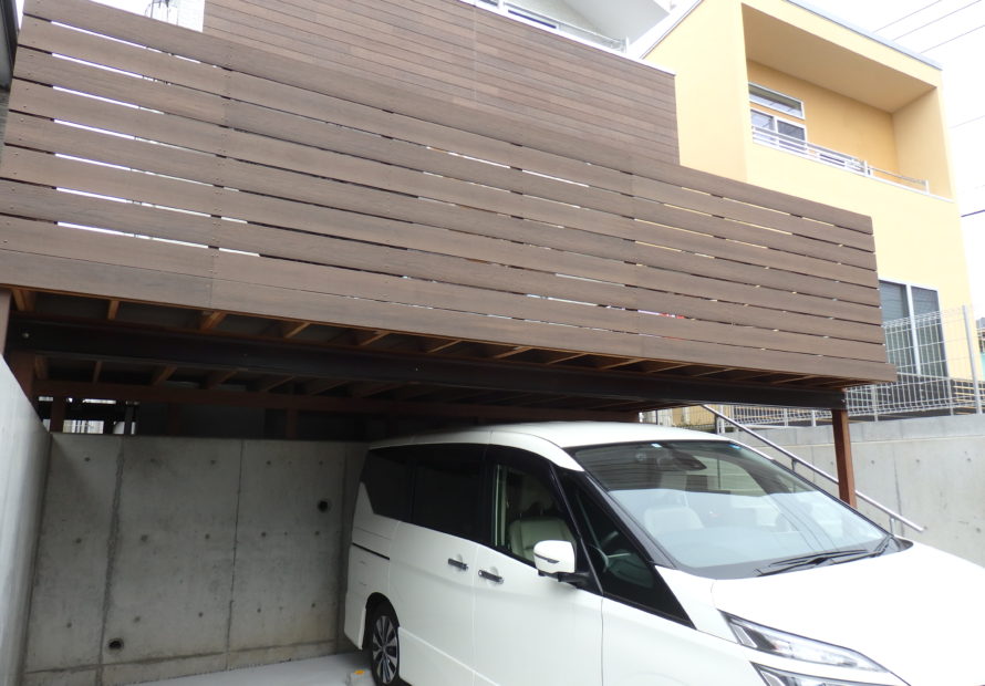 家の外観にマッチングした駐車場ハイデッキ