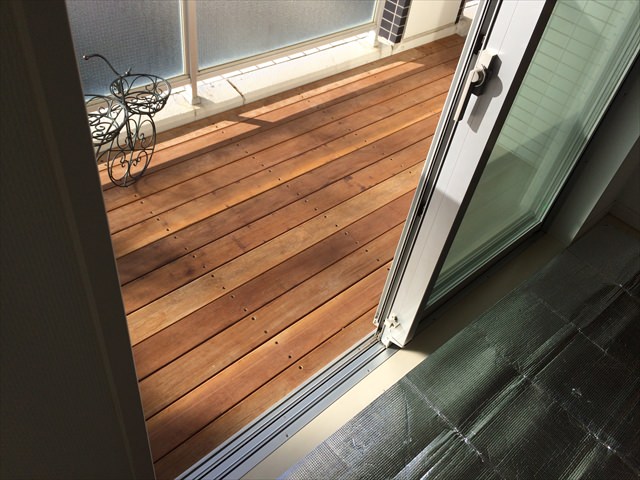 大小2ヵ所のベランダが存在するマンションで、今回は小側ベランダの一部、3×1.2メートルの寸法でのご依頼となりました。 部屋からの見た目の向上、段差が微小になることでの負担軽減の目的と両方を兼ね備えているといっても良いと…..