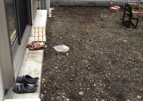 夏場に広げるお子さんのビニールプール。遊び場としては庭で良かったのですが、遊んだあとが庭の泥でどろんこになってしまうことやお部屋から直接ではなく、段差を降りてその先に・・・と導線を考えると、そのままでは使いづらいことが多々あります。ですが、庭いじりが好きな施主様からすると、物置もあり、庭全面敷きではなく一部で良いということでした。家からの出幅が180センチとサイズとしても使いやすい大きさになっていです。