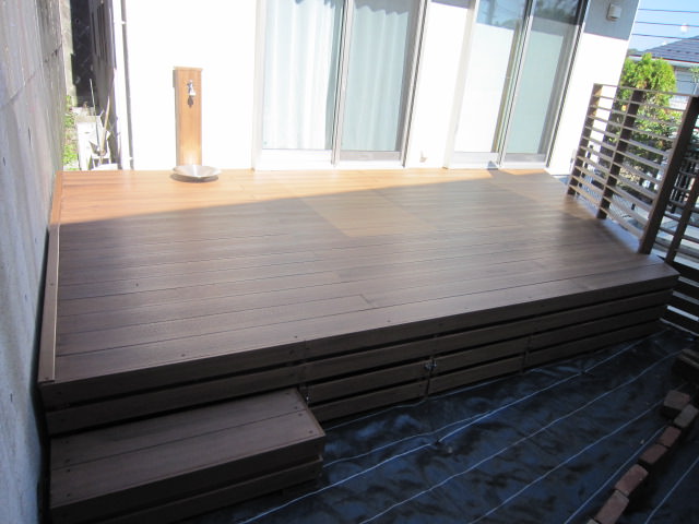 大変好評です。アールウッドは写真のように人工木、樹脂木のような言葉が当てはまら