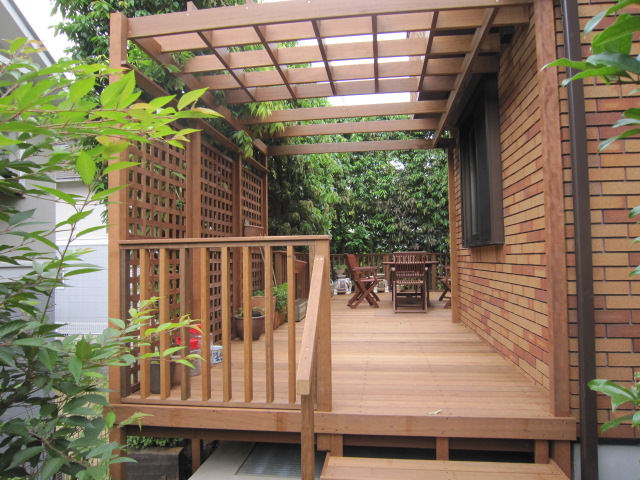 横浜市の閑静な住宅地にお住まいの施主様は古いデッキが腐食したのを期に今度は腐食に強い天然木材をご検討していただきウリン材に決定。