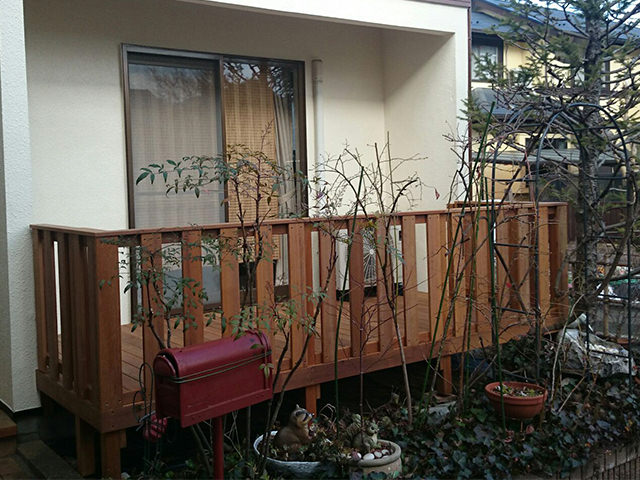 一昔前に工務店に作ってもらったウッドデッキですが、当時は杉材やレッドシダーと言われる雨風に弱い材料を使用していました。それでも掃除や毎年防腐剤入りの塗装を施したり、手間暇かけてお手入れをして保っていていたウッドデッキも、傷みが進行したため、作り直しを決断されてご依頼となりました。