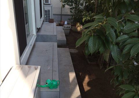 隣家との目隠し用途で新築時から生える樹木が成長しすぎてしまい、日差しを遮っていました。それと東京都の密接住宅事情も相まって、薄暗いイメージになってしまっているお庭でした。 そのお庭のリニューアルに際しては、「有効範囲を増…..