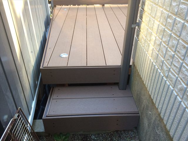 ウッドデッキ自体も大きさを広げました。今までは奥にある物置まで距離がある上に、導線上に段差があったためお部屋から平坦で物置前まで行けるように延長しました。これで片づける物を持ったままでもスムーズに行くことができます。